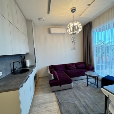Mikis apartamentai Kunigiškėse – jaukūs, su terasa ir visais patogumais, vos 900 m nuo jūros.